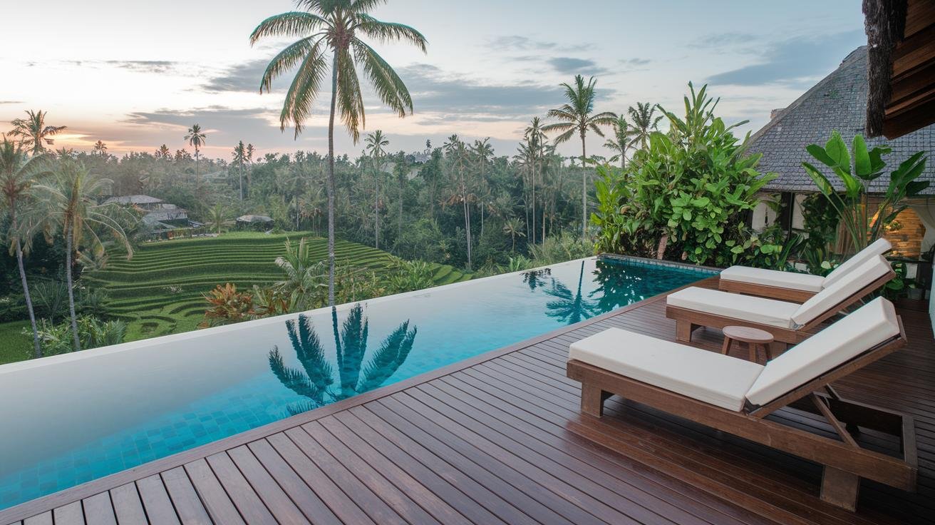 Outside, mornings stretch lazily. The infinity pool looks over rice paddies (stepped fields that glow green at sunrise) and landscaped gardens. Sunset by the pool is practically a ritual. Pure calm.