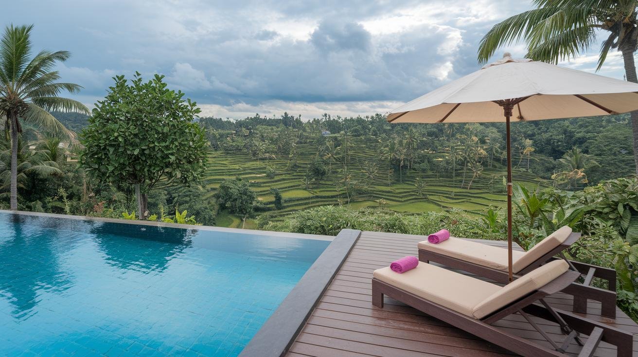 Standard two-bedroom villas run about $80–$150, luxury private-pool homes $200–$400, and basics start near $50. Weekdays usually have the most availability, weekends a bit busier, and rains bring rice terraces (stepped fields that glow emerald at sunrise) and the soft patter of showers.